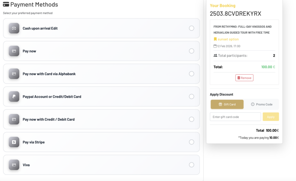 Customers clearly see “Today you pay” vs full amount → increases trust and conversion. - Integrated Discounts