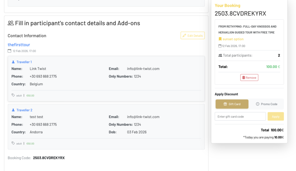 Travellers can review and edit participant details instantly before payment — reducing mistakes and support workload. - Improved Contact & Traveller Flow